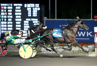 The dark bay world champion, conditioned by Clyde Francis, rolled away from the starting gate to take the lead. Driver Montrell Teague never looked back, negotiating a :26 opening quarter, :54.4 half and took his eight foes to the three-quarters in 1:22.1.